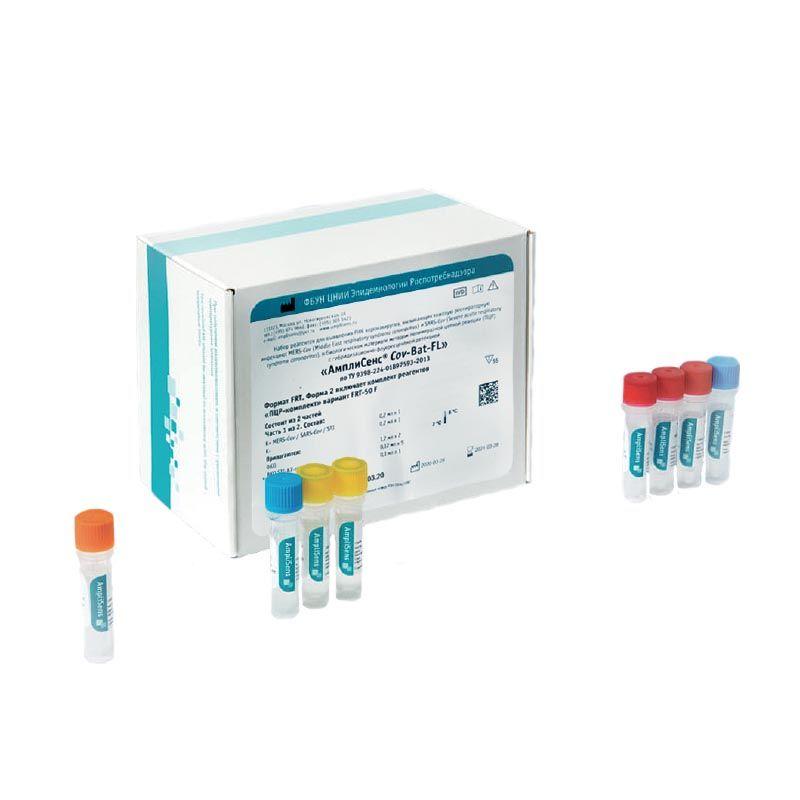 Набор реагентов для выявления возбудителей острых респираторных вирусных инфекций человека (ОРВИ): РНК респираторно-синцитиального вируса (human Respiratory Syncytial virus - hRSv), метапневмовируса (human Metapneumovirus - hMpv), вирусов парагриппа 1,2, 3 и 4 типов (human Parainfluenza virus - 1-4 - hPiv), коронавирусов (human Coronavirus - hCov), риновирусов (human Rhinovirus - hRv), ДНК аденовирусов групп В, С и Е (human Adenovirus В, С, Е - hAdv) и бокавируса (human Bocavirus - hBov) в клиническом материале методом полимеразной цепной реакции (ПЦР) с гибридизационно-флуоресцентной детекцией "АмплиСенс® ОРВИ-скрин-FL" по ТУ 9398-155-01897593-2010. Вариант FRT. Форма 1 включает комплект реагентов "ПЦР-комплект" вариант FRT (пробирки 0,2 мл в соответствии с типом амплификатора). |