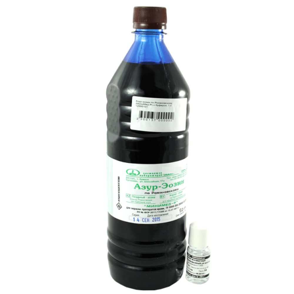 Состав красителя: азур (синий краситель) и эозин (красный краситель). При окрашивании клеток азур используется для окрашивания ядер клеток в синий цвет, а эозин — для окрашивания цитоплазмы клеток в различные оттенки красного, в зависимости от их типа.